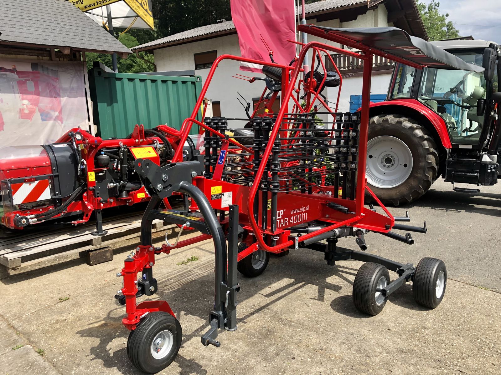 Sip Star 400/11 Monocoque-Schwader – 11 Zinkenarme mit je 4 Doppelzinken – 4 Doppelfederzinken pro Zinkenarm – modulare Rotoraufhängung – Tandemrahmen – alle Zinken abnehmbar – robuste Schwenklagerung für optimale Spurtreue – Dämpfungsdistanzstücke – Stützrad – klappbarer Schwadervorhang – klappbares Schutzgeländer – Antriebswelle. Die Maschine ist ab Lager verfügbar und kann bei uns besichtigt werden!